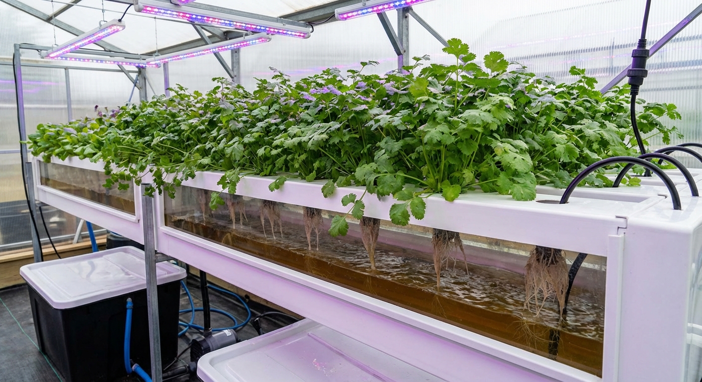 Mint thrives exceptionally well in NFT hydroponic systems due to the constant availability of water and oxygen. It is an aggressive grower that spreads via runners (stolons). In an NFT setup, growers must be vigilant about root management, as mint roots can quickly grow long and dense, potentially clogging the channels and causing overflows.