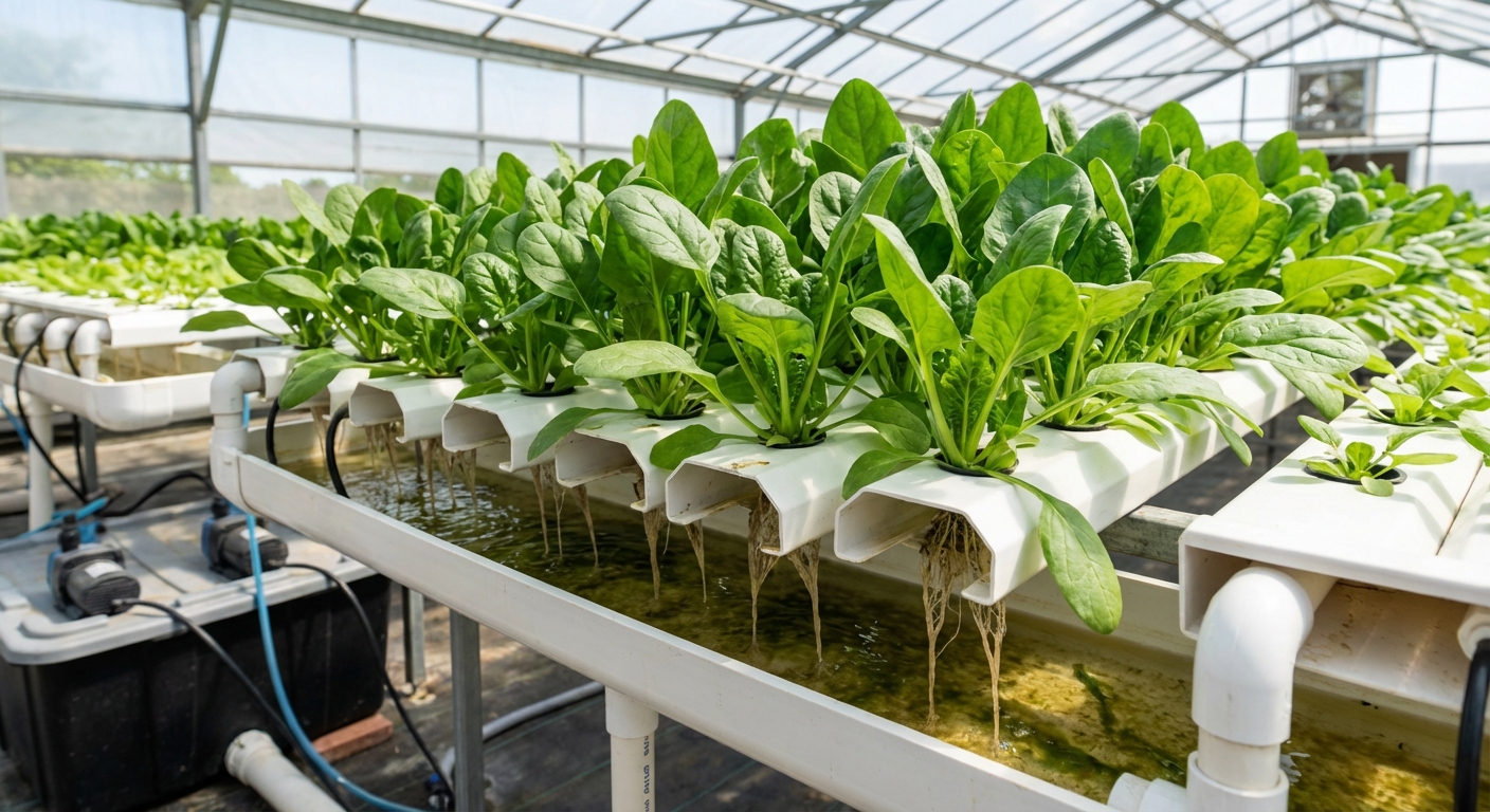 Spinach is an excellent crop for NFT systems due to its short growth cycle and compact stature. However, it is more susceptible to root rot (Pythium) than lettuce and prone to bolting (flowering) in temperatures above 24°C. Success in NFT depends heavily on keeping the nutrient solution cool and well-oxygenated.